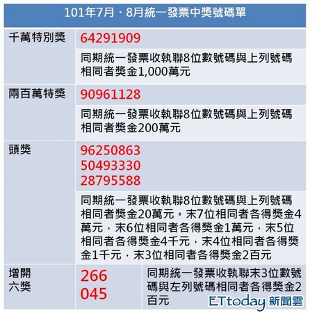 101å¹´7 8æçµ±ä¸ç¼ç¥¨ä¸çèç¢¼å® å¿